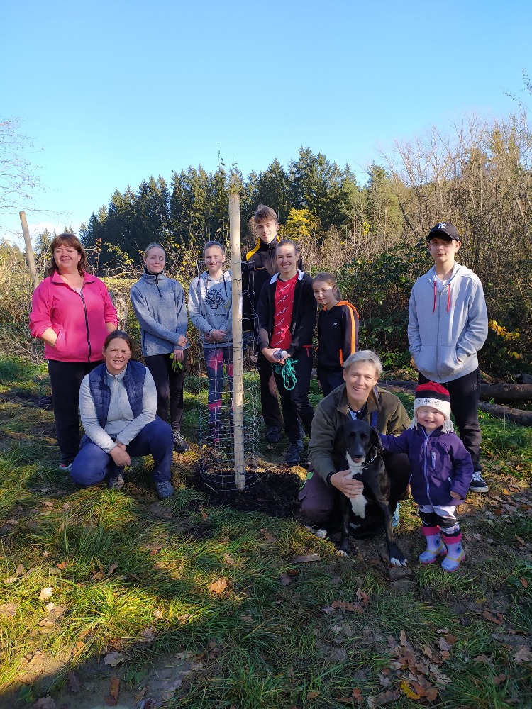 Když se našla paní učitelka přírodopisu na mateřské dovolené(členka pionýra), tak byl i realizátor, který naplánoval celou akci od vytipování stromů, pořízení, určení míst pro sázení. Pak už skoro stačilo oslovit všechny členy a nečleny a mohli jsme se sejít. Každý si dopředu zamluvil strom a tím i místo a stal se i patronem stromu na TZ.