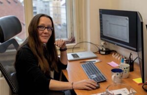 Další kancelář patří Tereze Paulíkové Trojanové. Je členkou 63. pionýrské skupiny Sosna Praha 8. Tereza pracuje na ústředí dlouhodobě a je grafička. V náplni práce má zpracování grafických podkladů, fotobanku. Díky její práci dostáváte každý měsíc do ruky pionýrský zpravodaj Mozaika, u ní se sbíhají všechny příspěvky, zajišťuje obsah časopisu a jeho grafickou úpravu. Její práci vidíte na všech tiskovinách spolku, na předmětech v e-mošce, na PF a kalendářících Pionýra, na výroční zprávě. Kde vidíte jakoukoli grafickou práci, vidíte i Terezku. Jejím zvláštním znamením je nekonečná trpělivost se všemi, kdo své příspěvky do Mozaiky posílají na poslední chvíli a někdy ještě později.