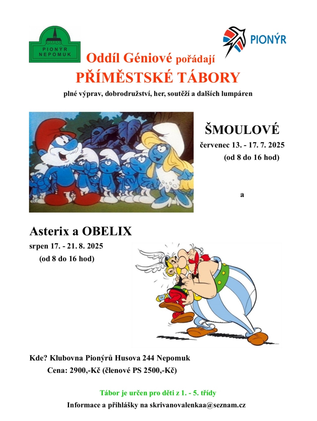 17. 8. - 21. 8. 2026 Pořadatel: Místo konání: Pionýr Nepomuk, Plzeňský